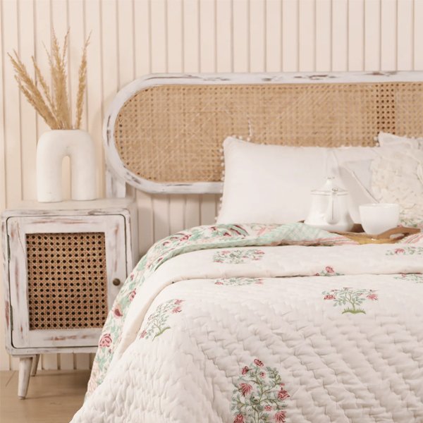 Hand Block Floral Print Soft Cotton Kantha Bed Covers