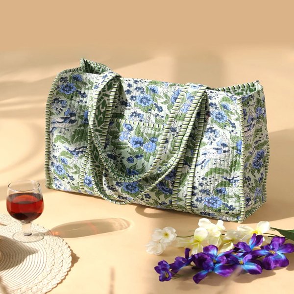 Floral Print Cotton Kantha Quilt Tote Shoulder Bag